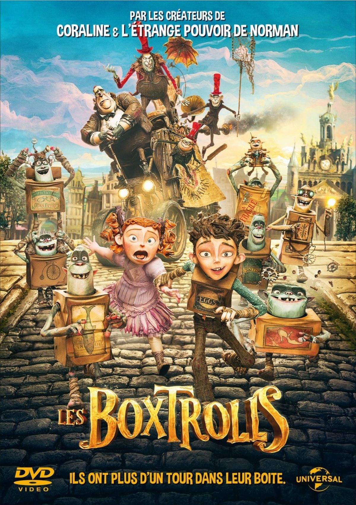 Les Boxtrolls est une fable qui se déroule à Cheesebridge, une ville huppée de l’époque victorienne, dont la principale préoccupation est le luxe, la distinction et la crème des fromages les plus puants. Sous le charme de ses rues pavées, se cachent les Boxtrolls, d’horribles monstres qui rampent hors des égouts la nuit pour dérober ce que les habitants ont de plus cher : leurs enfants et leurs fromages. C’est du moins la légende à laquelle les gens de Cheesebridge ont toujours cru. En réalité les Boxtrolls sont une communauté souterraine d’adorables et attachantes créatures excentriques qui portent des cartons recyclés comme les tortues leurs carapaces. Les Boxtrolls ont élevé depuis le berceau un petit humain orphelin OEuf, comme l’un des leurs, explorateur de décharge et collectionneur de détritus mécaniques.